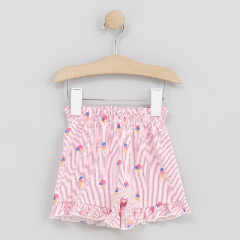 Short Pink Cream con estampado de rayas y motivos de helados, una prenda alegre y con un toque divertido que aporta frescura al look. Ligero y cómodo, es ideal para los días más cálidos, perfecto para acompañar cualquier plan con estilo y libertad de movimiento.