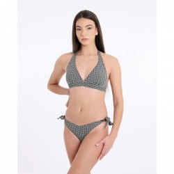 La braguita del modelo Milos presenta un corte clásico con lazos ajustables en los laterales y estampado vichy, que aporta un aire fresco y nostálgico. Confeccionada en tejido ligero y cómodo, ofrece un ajuste versátil con un acabado gráfico y atemporal.