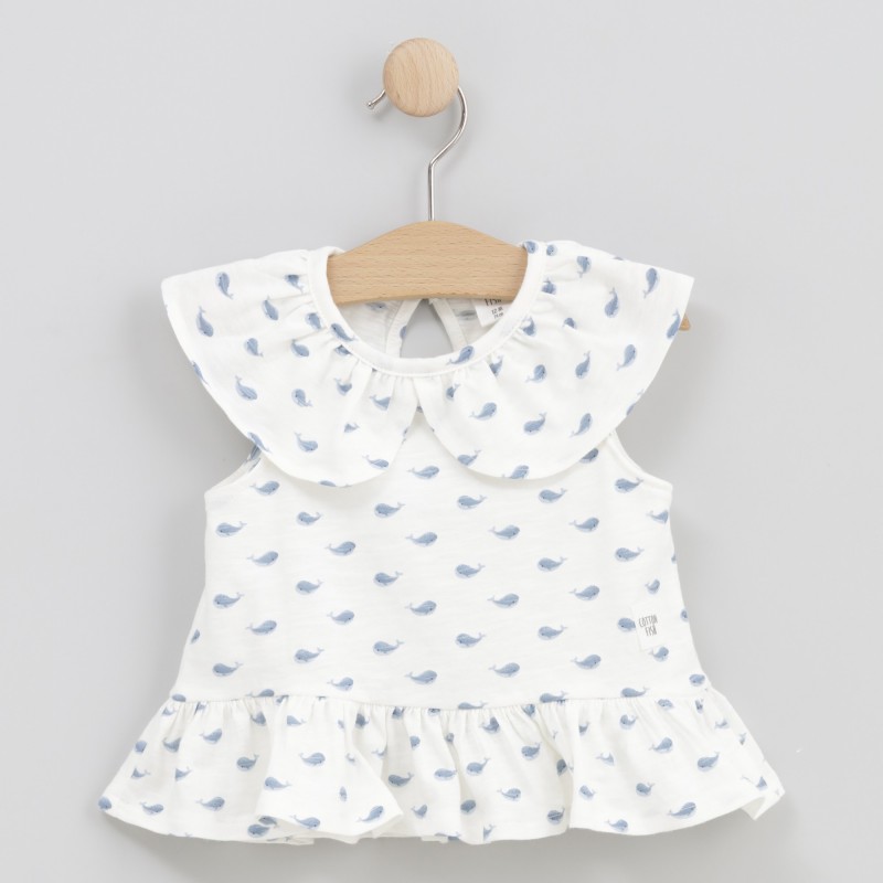 Blusa sin mangas Mare con estampado de ballenas, una prenda ligera y con un diseño de inspiración marina que aporta un toque fresco y divertido al look. Cómoda y fácil de combinar, es ideal para los días más cálidos, perfecta para acompañar cualquier plan con estilo y naturalidad.