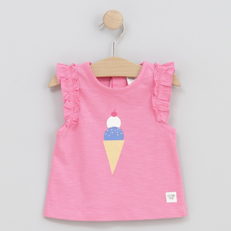 Camiseta sin mangas Pink Cream con motivo de helado, una prenda fresca y con un toque divertido que aporta dulzura al look. Ligera y cómoda, es ideal para los días más cálidos, perfecta para acompañar cualquier plan con estilo y libertad de movimiento.