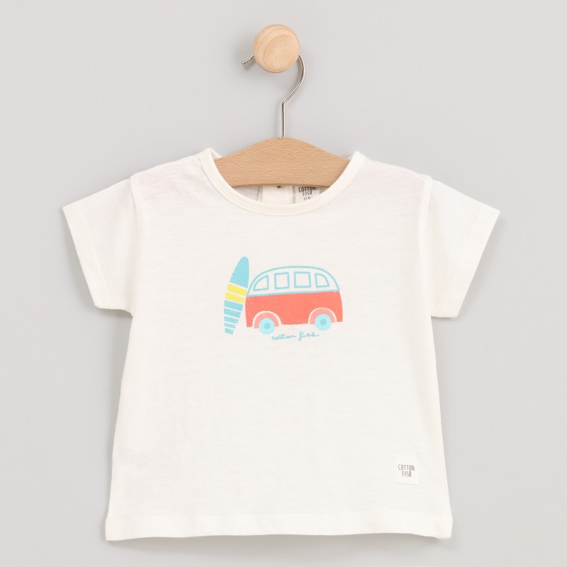 Camiseta de manga corta Surfing con diseño de caravana, una prenda con un aire aventurero y desenfadado que invita a explorar y disfrutar. Ligera y cómoda, es ideal para el día a día, perfecta para acompañar cualquier plan con frescura y estilo.