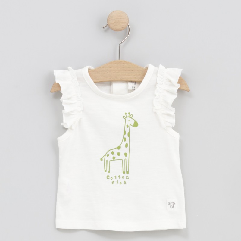 Camiseta sin mangas Savanna con diseño de jirafa, una prenda fresca y con un toque divertido inspirada en la naturaleza. Ligera y cómoda, es ideal para los días más cálidos, perfecta para acompañar cualquier plan con libertad de movimiento y un estilo aventurero.