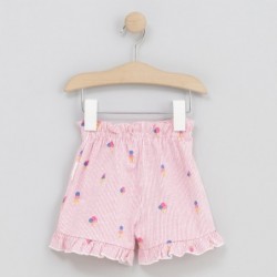 Short Pink Cream con estampado de rayas y motivos de helados, una prenda alegre y con un toque divertido que aporta frescura al look. Ligero y cómodo, es ideal para los días más cálidos, perfecto para acompañar cualquier plan con estilo y libertad de movimiento.