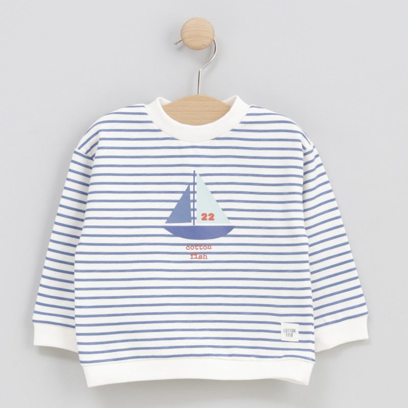 Sudadera de rayas Sailer con un diseño de inspiración marinera que aporta un estilo fresco y actual al look. Cómoda y versátil, es una prenda ideal para el día a día, perfecta para acompañar los días más frescos con un toque desenfadado y libertad de movimiento.