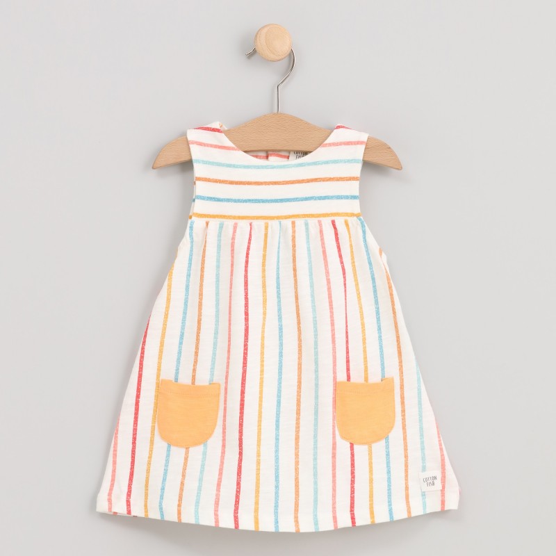Vestido sin mangas de rayas Blooming con un diseño fresco y actual que aporta un toque alegre al look. Ligero y cómodo, es una prenda ideal para los días más cálidos, perfecta para acompañar cualquier plan con estilo y libertad de movimiento.