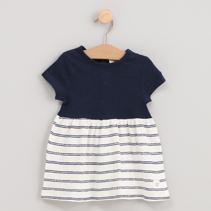 Vestido de manga corta Mare con diseño combinado de rayas, una prenda fresca y actual que aporta dinamismo al look. Ligero y cómodo, es ideal para el día a día, perfecto para acompañar cualquier plan con naturalidad y libertad de movimiento.