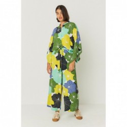 Pantalón palazzo con cinturilla elástica, cinturón anudado y bolsillos delanteros.
