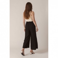 Pantalón palazzo con cinturilla elástica, cinturón anudado y bolsillos delanteros.