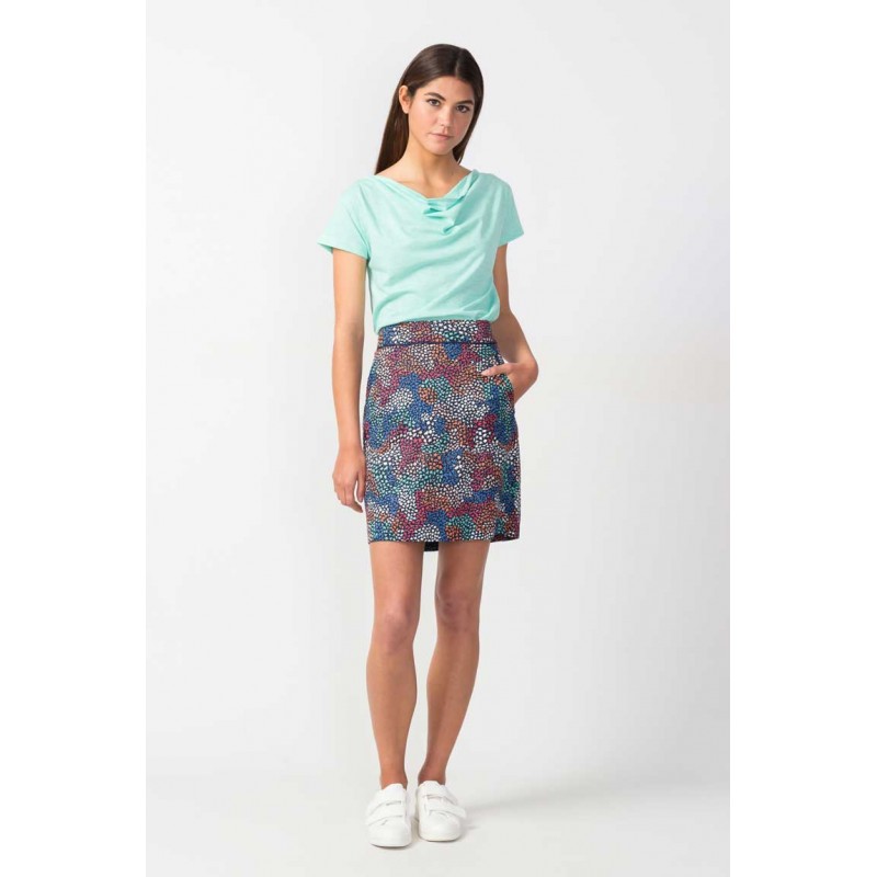 Verpassen Sie nicht Bat, das T-Shirt aus 100 % Bio-Baumwolle mit drapiertem Kragen und kurzen Ärmeln aus der unverzichtbaren ethischen Modekollektion von SKFK.