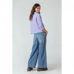 Camiseta de manga 3/4 con cuello de embudo, hecha de algodón orgánico elástico con textura otomana. El algodón orgánico se cultiva utilizando métodos y materiales que tienen un bajo impacto en el medio ambiente. Esto significa que no se utilizan fertilizantes y pesticidas tóxicos y que se mantiene la fertilidad del suelo. La modelo lleva una talla 38 y mide 1,73 m