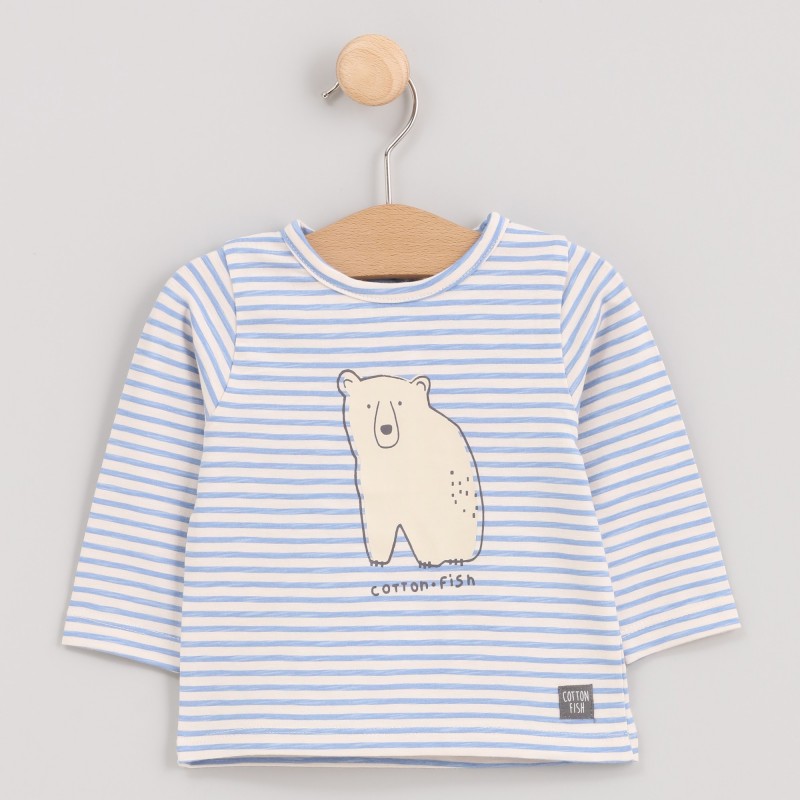 Camiseta de rayas de la colección Bear & Co con dibujo de oso en la parte frontal, una prenda alegre y con encanto que aporta personalidad a cualquier conjunto. Confeccionada en un tejido suave y cómodo, es ideal para el día a día, combinando un diseño clásico con un toque divertido que encantará a los más pequeños.