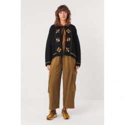 Cárdigan de punto grueso inspirado en las tradicionales chaquetas vascas mendigoizal. Se cierra anudando unos cordones.