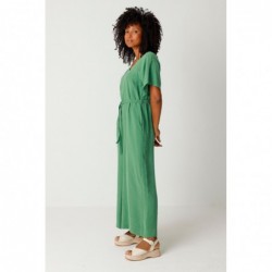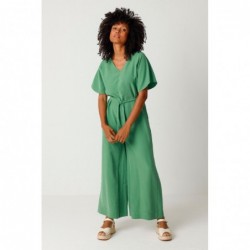 Mono largo de corte holgado con escote de pico pronunciado y escote de lágrima de pico en la espalda. De manga corta raglán y con unos prácticos bolsillos laterales para las manos.