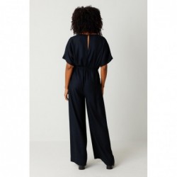 Mono largo de corte holgado con escote de pico pronunciado y cinturón anudado. Mangas dolman y prácticos bolsillos delanteros.