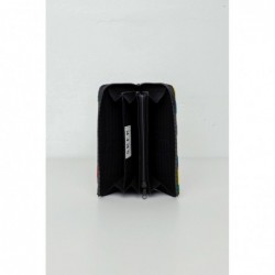 Cartera continental de algodón reciclado con cierre de cremallera y forro estampado. Múltiples ranuras para tarjetas en el interior. Estampado de flores.