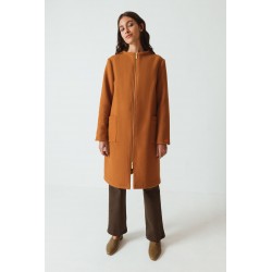 Abrigo largo recto hecho de mezcla de lana. Esta elegante prenda de manga larga tiene el cuello alto, bolsillos de parche, cierre delantero de cremallera con dos cursores y unos pespuntes en contraste en las costuras interiores. Negro. En lugar de tirarlas, las botellas de plástico se pueden reutilizar para fabricar prendas nuevas. Estos modelos, fluidos y resistentes, permiten minimizar los recursos utilizados en su producción.
