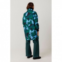 Abrigo de corte cocoon holgado, cuello subido y manga larga con puños de canalé. Tiene bolsillos delanteros, cierre delantero abotonado, está totalmente forrado y lleva un acolchado Sorona. Estampado multicolor.