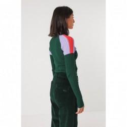 Camiseta de manga larga de punto de canalé fino con cuello alto y parches de color en contraste.
