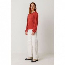 Camiseta ajustada de manga larga con los puños y los hombros fruncidos y el escote redondo de canalé, cómoda y con mucho estilo.