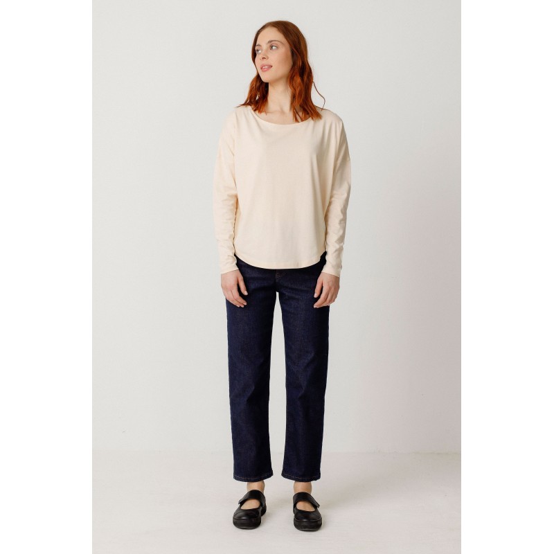 Camiseta holgada de manga larga y cuello barco. Una prenda cómoda y desenfadada para el día a día.