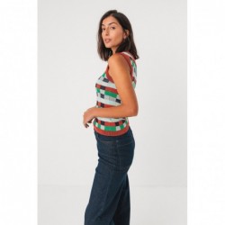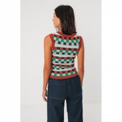 Top de punto sin mangas con un estampado de cuadros multicolor. Cuello redondo y corte ceñido.