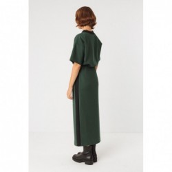 Falda recta de corte hasta el tobillo con una franja de color en contraste. Cintura elástica y aperturas en los laterales.