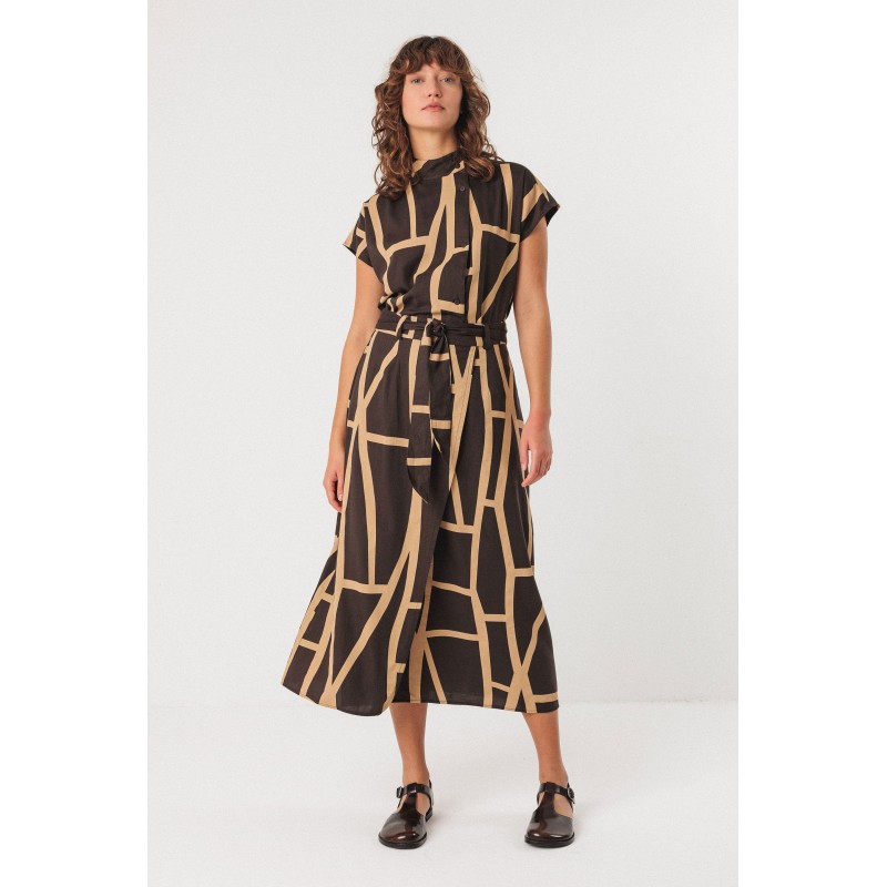 Falda midi recta de estilo cruzado. Lleva bolsillos a los lados, un cierre de cremallera en la costura lateral y la cintura anudada.