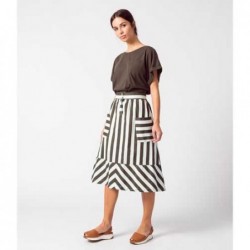 Añade poder a tus looks con esta falda midi estampada con una composición de paneles a rayas.