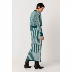Falda larga de punto con botones en un lateral. Colaboración con Martina Spetlova. Fusiona moda y talento artístico en una prenda única. Algodón orgánico con certificado GOTS.