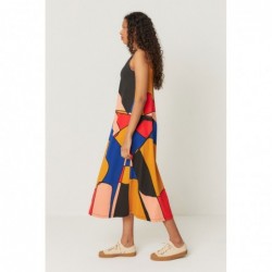 Vestido midi sin mangas de corte acampanado y cuello de pico hecho de algodón ecológico stretch.