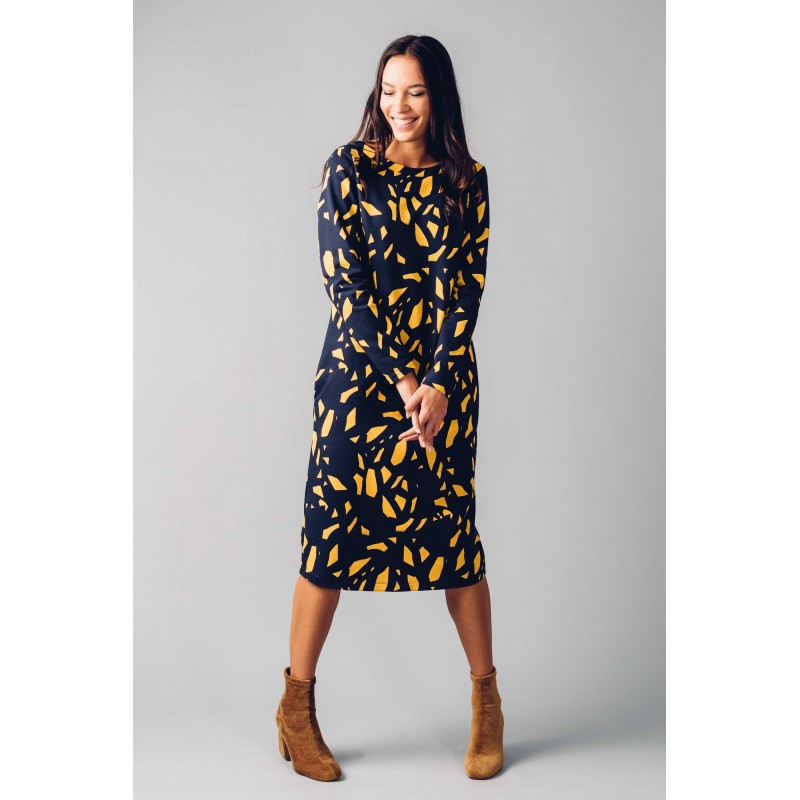 Vestido de corte relajado minimalista de largura media con espalda en V y confeccionado en Europa con tejidos reciclados.