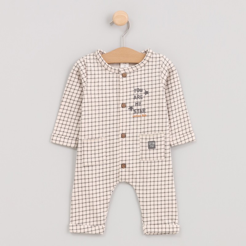 Pelele de la colección Cosmos con estampado de cuadros, una prenda con encanto clásico y un diseño cómodo ideal para el día a día. Confeccionado en un tejido suave y agradable, ofrece libertad de movimiento y un ajuste confortable, perfecto para los más pequeños en cualquier momento.