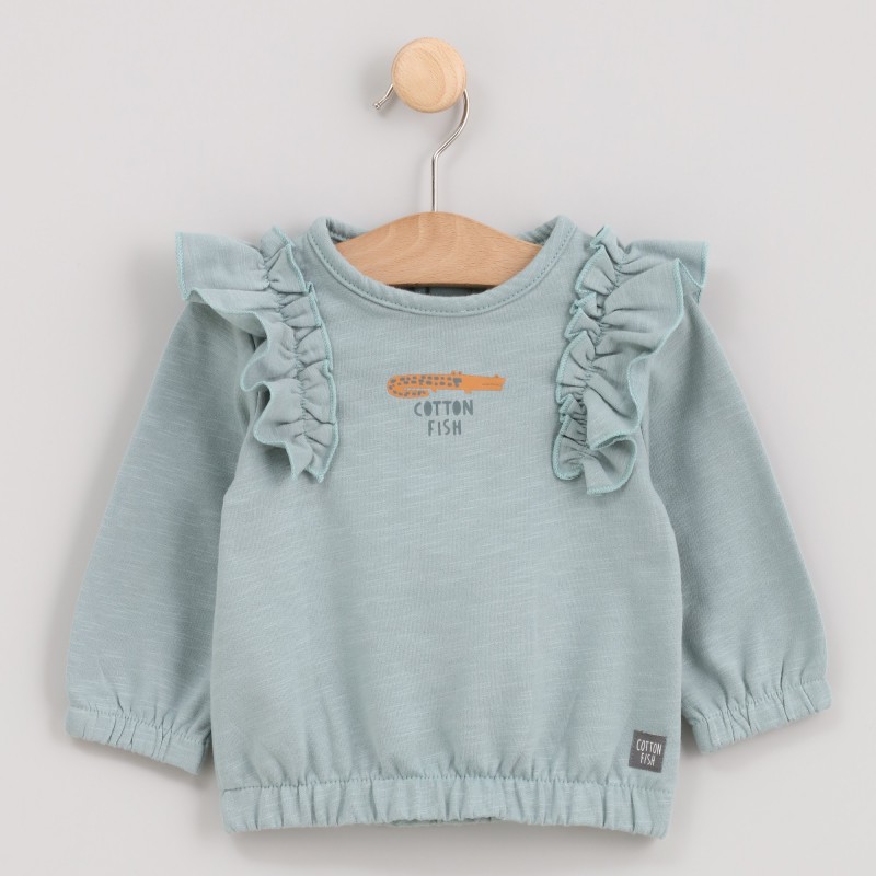 Sudadera con volantes en los hombros de la colección Jungle, diseñada para combinar comodidad y un toque de estilo. Confeccionada en un tejido suave y agradable, su diseño añade un detalle delicado que eleva cualquier look diario. Perfecta para crear conjuntos alegres y versátiles con el resto de la colección.