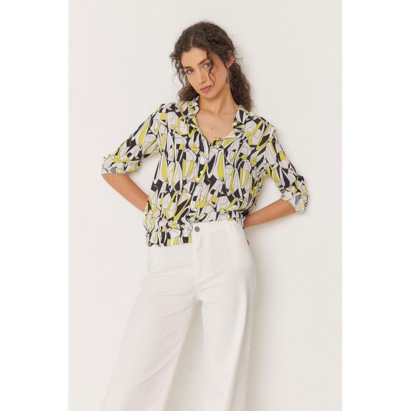 Camisa de manga larga, corte recto y cuello clásico. Los puños y el cierre delantero son abotonados.
