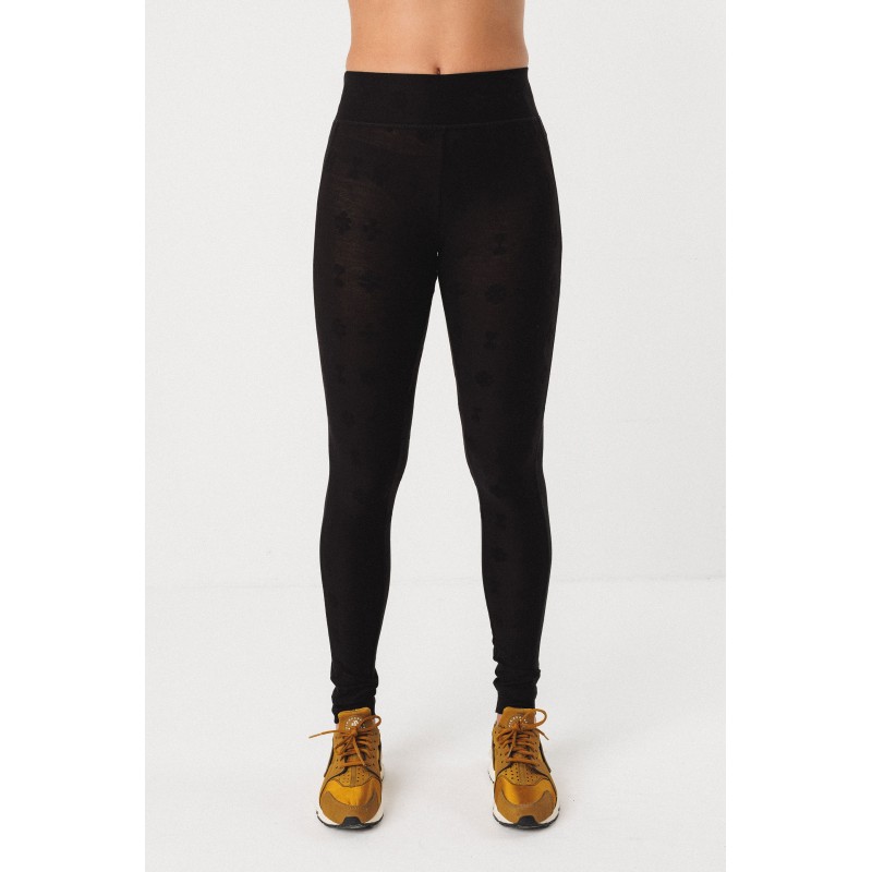 Leggings de cintura alta elástica y corte hasta el tobillo, adornados con costuras remalladas decorativas.