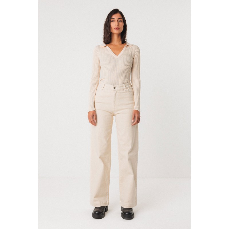 Pantalón recto de pata ancha y corte hasta el tobillo, con bolsillos delante y detrás y bragueta con cremallera delantera.