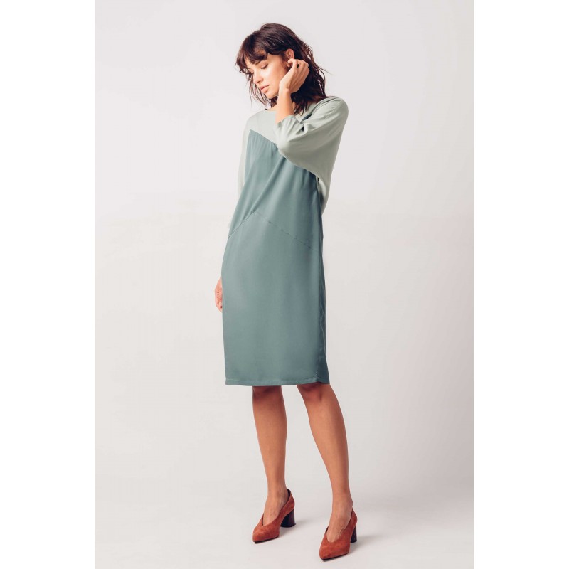 Suavidad, biodegradable y regula la temperatura corporal son algunas de las características que el Lyocell Tencel aporta a este precioso vestido.