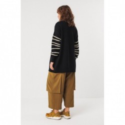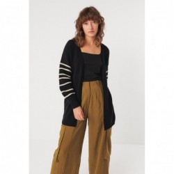Cardigan en mélange de coton recyclé, fabriqué au Portugal. En maille semi-épaisse, il présente de longues manches bouffantes.