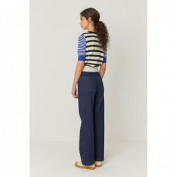 Pull col rond avec manches 3/4 et bordure côtelée au col, à la taille et aux poignets.
