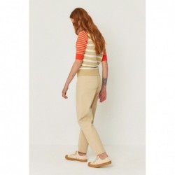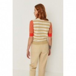 Pull col rond avec manches 3/4 et bordure en tricot côtelé au niveau du cou, de la taille et des poignets.