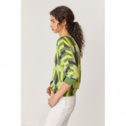 Pull à manches chauve-souris en coton biologique avec un col rond et une bordure côtelée aux extrémités des manches.