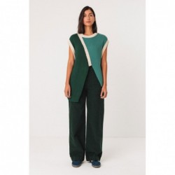 Pull long sans manches à col roulé et emmanchures tombantes. Confectionné en maille semi-épaisse, il présente une taille asymétrique et des finitions contrastantes.