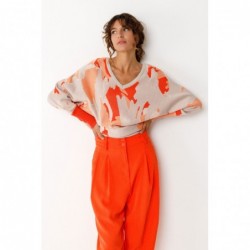 Pull à manches chauve-souris en maille légère de coton biologique certifiée GOTS. Col en V au dos et finitions côtelées au col, à la taille et aux poignets.