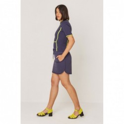 T-shirt à manches courtes avec col mao et surpiqûres contrastées à l'encolure. Fermeture zippée sur le devant.
