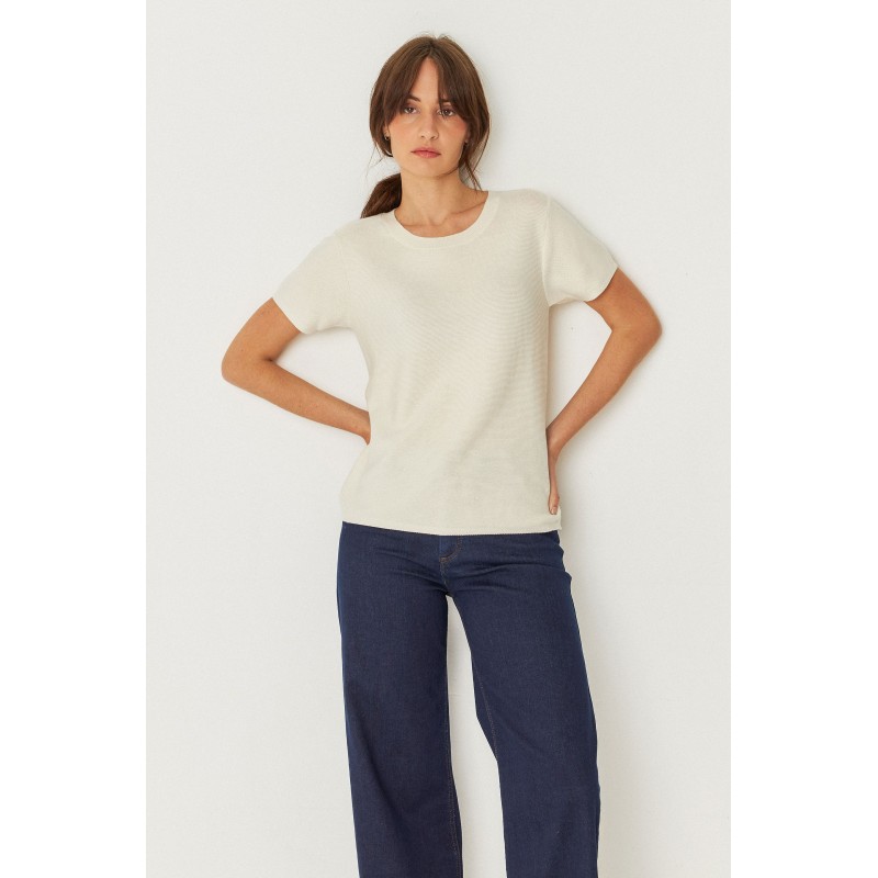 T-shirt à manches courtes et col rond en jersey de coton biologique. Bandes de propreté aux épaules.