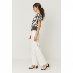 T-shirt à manches courtes et col V en jersey de coton biologique. Bords côtelés au col et à la taille.
