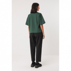 T-shirt court et ample à encolure ronde ornée d'une rayure contrastante. Coutures décalées aux épaules et manches courtes.