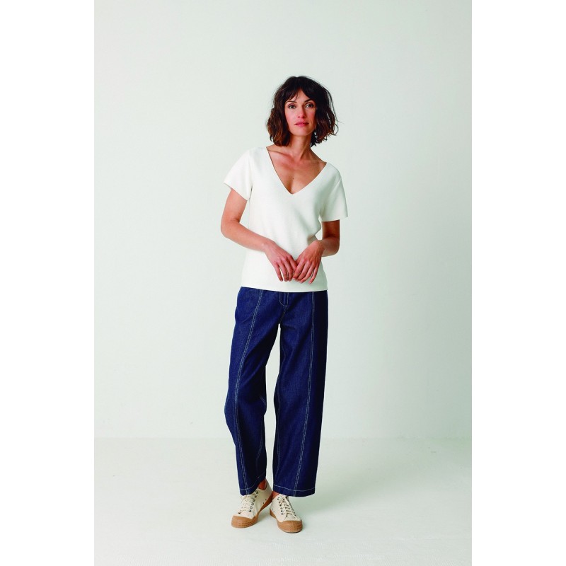 T-shirt en maille de coton biologique certifié GOTS, manches courtes et col en V. Coutures d'épaules naturelles. Fabriqué en Inde.