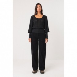 T-shirt en maille fine à effet texturé. Il présente une encolure carrée et des manches longues bouffantes à poignets côtelés.