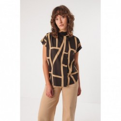 Chemise ample sans manches avec col mandarin asymétrique et fermeture boutonnée sur le devant.